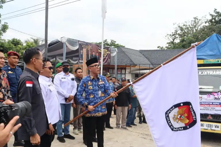 Lensahukumnews.com, Way Kanan – Bupati H. Raden Adipati Surya, S.H.,M.M menghadiri Acara Pelepasan Distribusi Logistik Pemilihan Umum Serentak Tahun 2024 di Halaman Kantor KPU Way Kanan, Senin (25/11/2024), yang dihadiri oleh unsur Kodim 0427/WK, unsur Polres Way Kanan, Kejaksaan Negeri Way Kanan, Kepala Kantor Kesatuan Bangsa dan Politik, serta Ketua KPU dan Ketua Bawaslu Kabupaten Way Kanan.