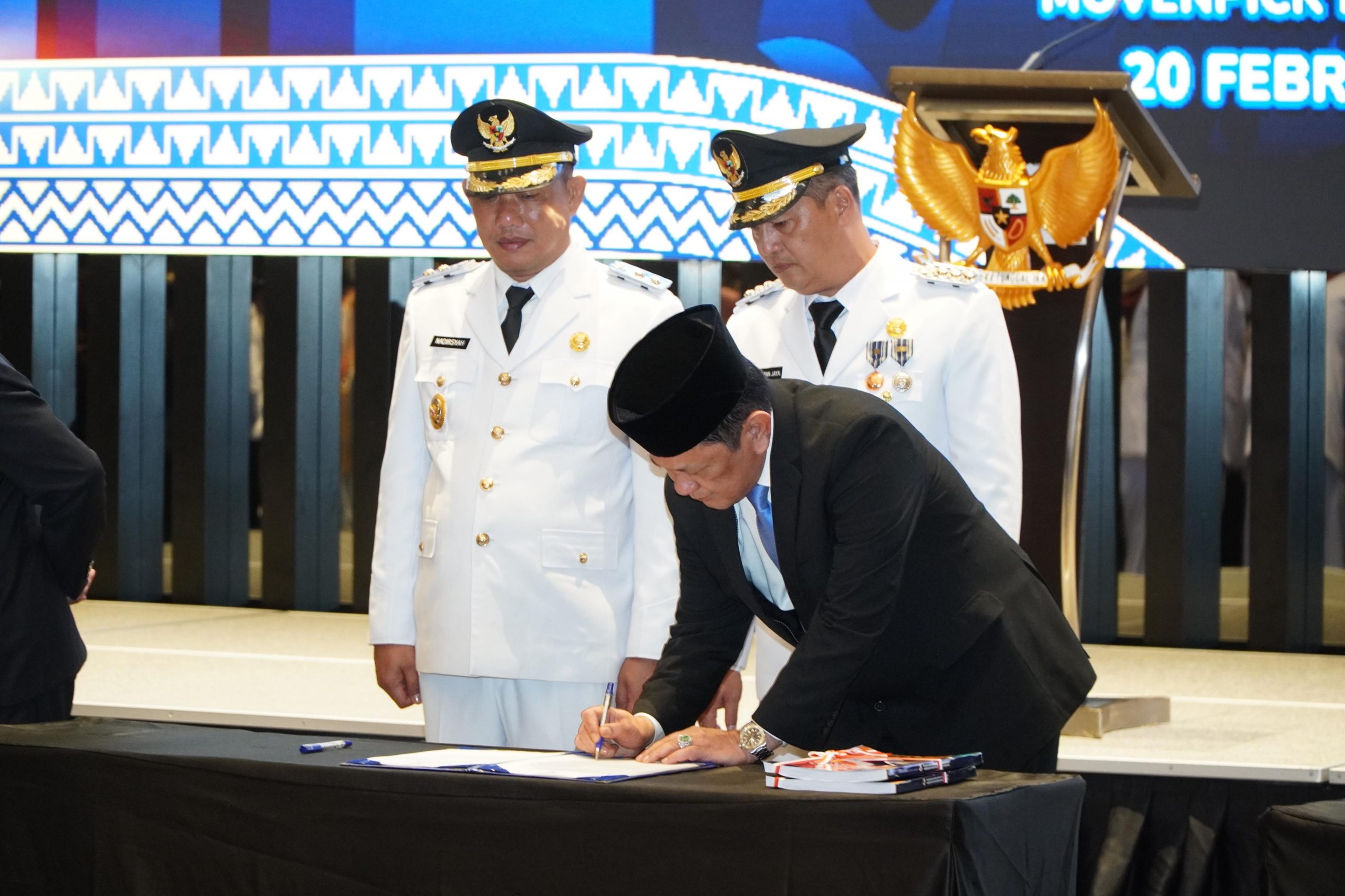 Setelah resmi dilantik oleh Presiden RI, Pasangan Bupati dan Wakil Bupati terpilih Tulangbawang Barat (Tubaba) Ir. Novriwan Jaya dan Nadirsyah melakukan penandatanganan serah terima jabatan, yang berlangsung di Movenpick Hotel, Jakarta. Rabu (20/02).