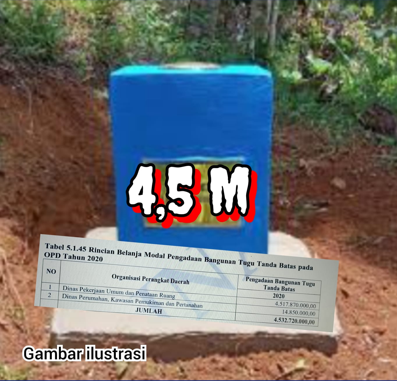 TUBABA, lensahukumnews.com – Berdasarkan Laporan Hasil Pemeriksaan atas Laporan Keuangan Pemerintah Daerah (LHP LKPD) Kabupaten Tulang Bawang Barat Tahun 2020 oleh Badan Pemeriksa Keuangan (BPK) Perwakilan Lampung terdapat realisasi belanja modal gedung dan bangunan pada Pengadaan Bangunan Tugu Tanda Batas Tahun 2020 sebesar Rp. 4,5 Miliar lebih pada Dinas PUPR Tulang Bawang Barat.