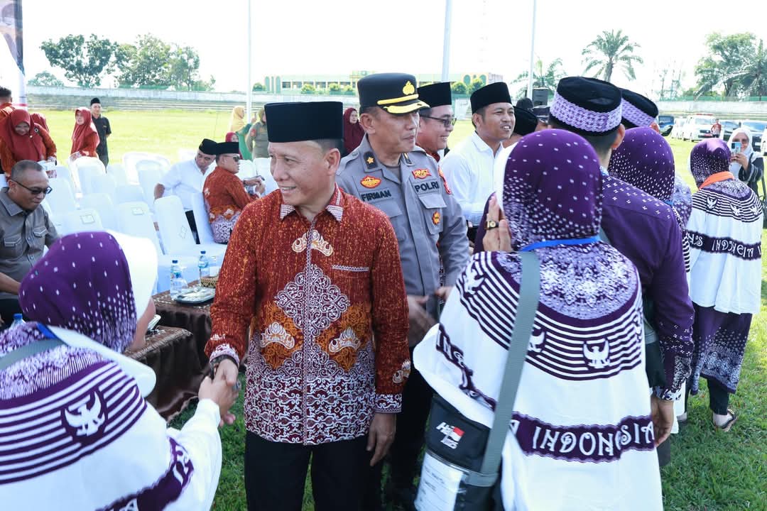 “Pemerintah Daerah mendoakan agar seluruh jemaah dapat menunaikan ibadah dengan lancar, menjadi haji yang mabrur, serta kembali ke tanah air dalam keadaan sehat dan selamat. Perjalanan ini adalah panggilan suci dari Allah SWT, semoga membawa keberkahan bagi pribadi dan daerah,” ujar Mankodri dalam pembacaan sambutan Bupati.