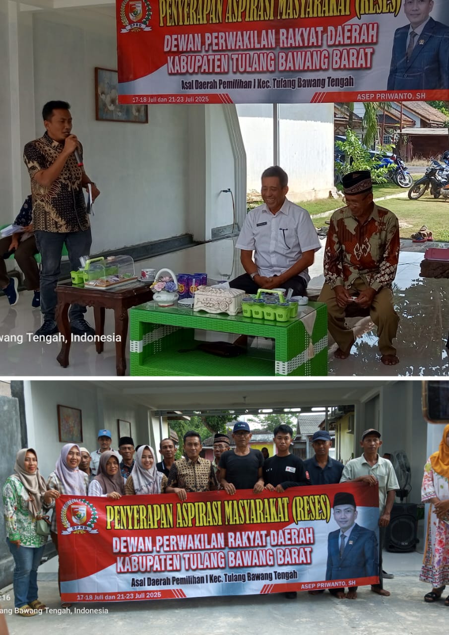 Tubaba, lensahukumnews.com — Anggota DPRD Kabupaten Tulang Bawang Barat (Tubaba) dari Fraksi Partai Amanat Nasional (PAN), Asep Priwanto, SH, menggelar kegiatan reses tahun 2025 di kediamannya yang berlokasi di Desa Bambu Kuning, Kelurahan Panaragan Jaya, Kecamatan Tulang Bawang Tengah, Rabu (23/07/2025).
