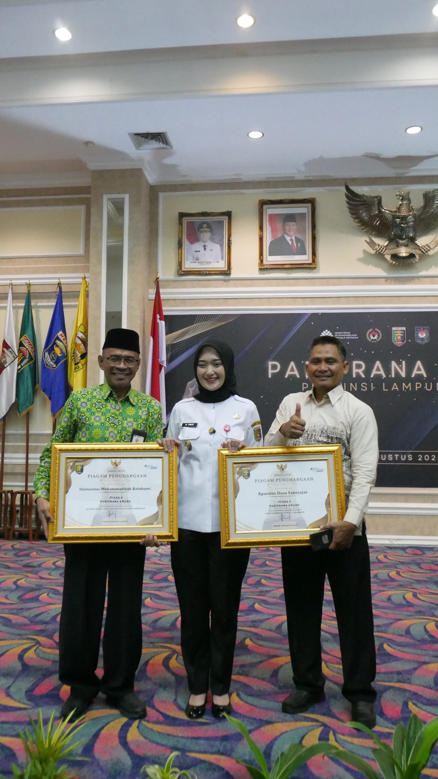 Dalam kesempatan ini, Rektor Universitas Muhammadiyah Kotabumi, Dr. Irawan Suprapto, M.Pd., menerima piagam tersebut sebagai juara 2 kategori Badan Usaha Menengah Besar Sektor Pendidikan.